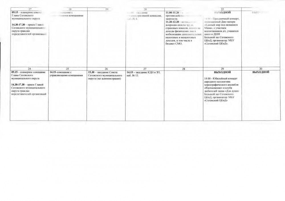 Календарный план работы органов местного самоуправления Сегежского муниципального округа на ноябрь 2025 года.