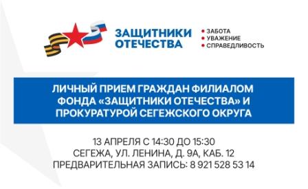 Прием пройдет по адресу: г. Сегежа, ул. Ленина, д. 9А, каб. 12.
