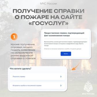 МЧС России для удобства граждан реализована возможность получить в электронном виде документ по факту пожара.